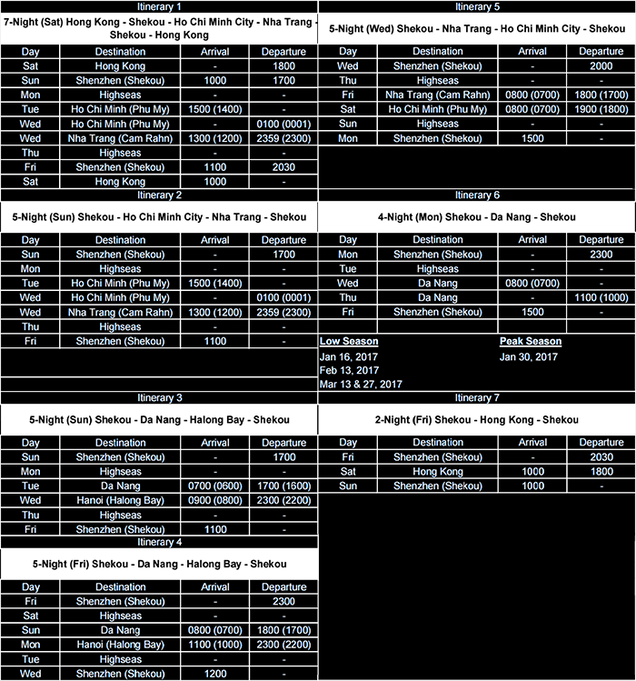 3. Berthing time may change subject to the availability of berths at different ports. Notice of the time changes will be given one week prior to departure.